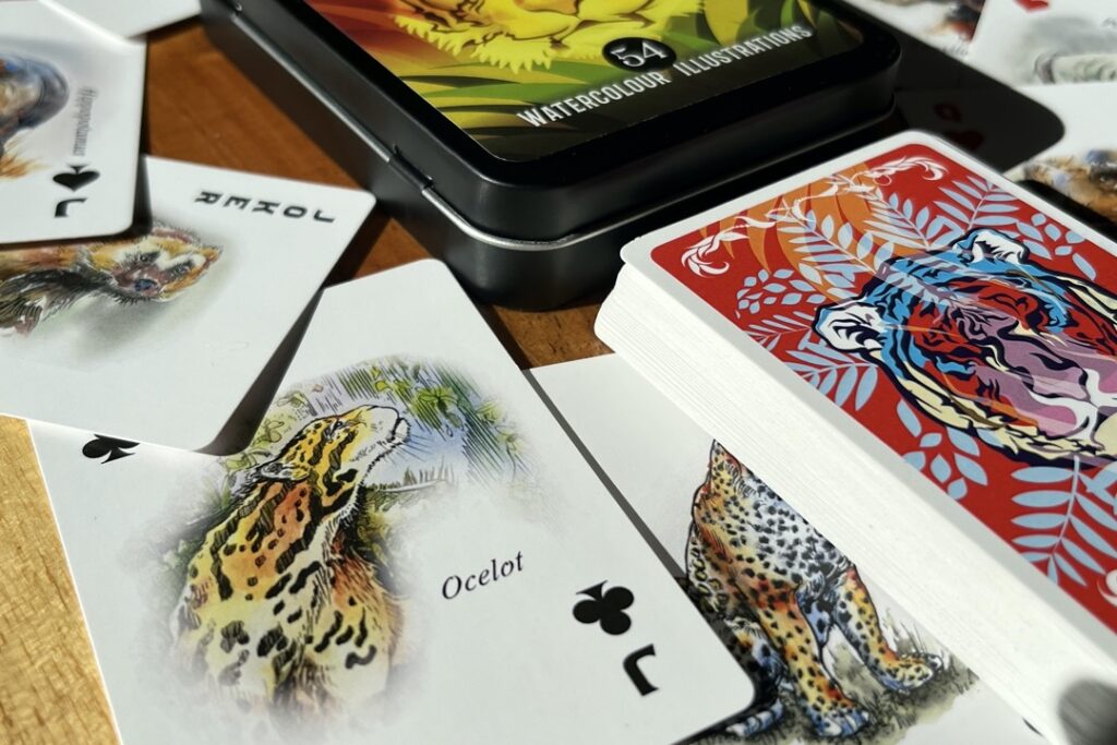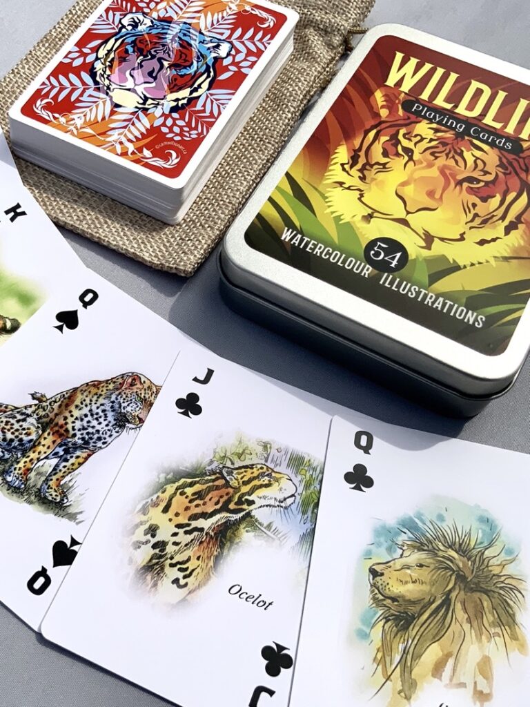 Illustrated Wildlife Playing Cards – 54 beautifully illustrated birds on 54 cards. The birds were illustrated in watercolours by artist Cam Wilson. This gift card set is perfect for bird and nature lovers and a great way to learn about birds while having fun playing cards. All illustrations were handmade and no AI was used.