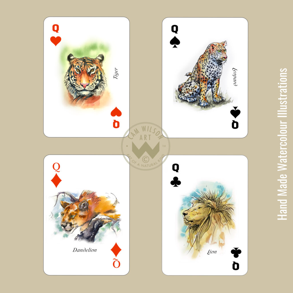 Not just a deck of playing cards but an entire gallery of handmade watercolor art. Perfect as a gift or keep as a collectors item or just enjoy a lively game of cards. And don’t forget to check out our art gallery of Watercolor Birds card deck and art gallery of Watercolor Wildflowers card deck.