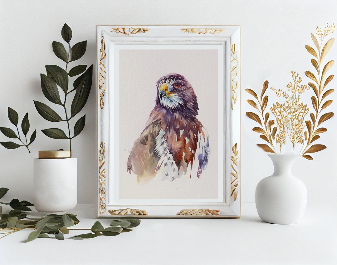 A series of 7 hawk portraits portrayed in watercolour.